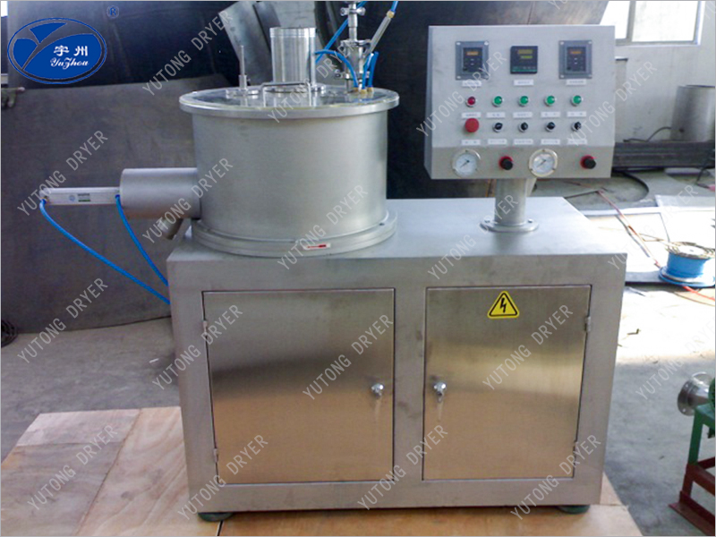 The wet particles made in the previous process are put into a rotating centrifugal disk, and the wet particles are subjected to the buoyancy of the air in the annular gap, the centrifugal force of rotation, and their own gravity, and move in a circular rope like shape. The formula liquid is sprayed into the moving material layer from a reasonable direction through a multi fluid spray gun, thereby forming highly spherical pellets. The principle is similar to that of a rotating fluidized bed.