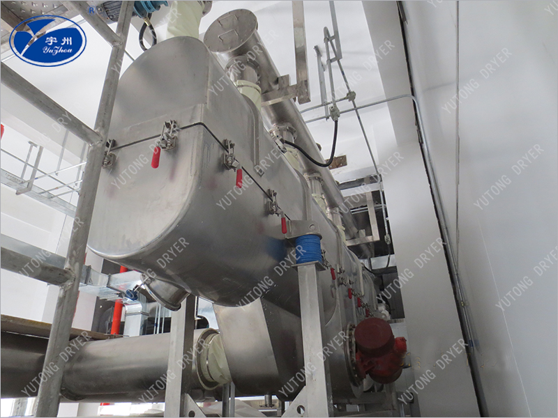 空氣經(jīng)加熱凈化后,由引風(fēng)機從下部導(dǎo)入,穿過料斗的孔網(wǎng)版。在工作室內(nèi),經(jīng)攪拌和負(fù)壓作用形成流態(tài)化,水份快速蒸發(fā)后隨著排氣帶走,物料快速干燥。