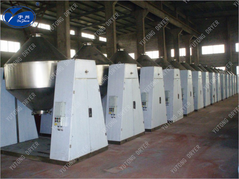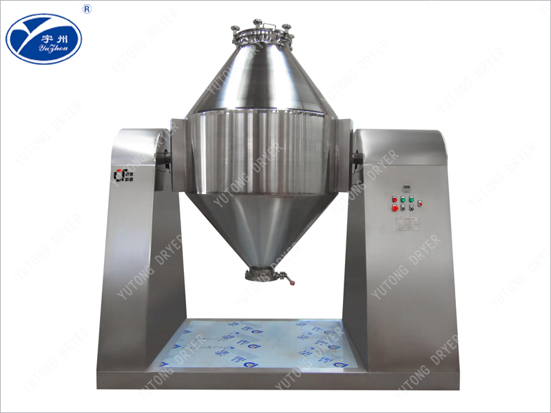 本機(jī)將粉末或粒狀物料通過真空輸送或人工加料到雙錐容器中,隨著筒體的不斷旋轉(zhuǎn),物料在容器中進(jìn)行復(fù)雜的撞擊運(yùn)動(dòng),達(dá)到均勻的混合。