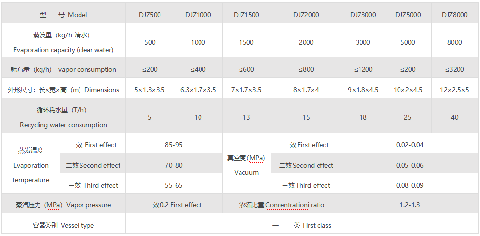 2、本濃縮器采用三效同時蒸發(fā),二次蒸汽得到反復(fù)作用,既節(jié)省了鍋爐的投資,又節(jié)約能源消耗,耗能與單效濃縮器相比降低70%,不到一年用戶可從節(jié)能費中收回本濃縮的全部投資。