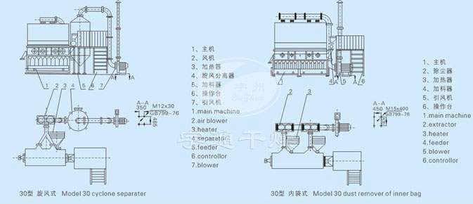 注:干燥能力以初含水份20%、終含水份5%、進風(fēng)溫度130℃而定,其他物料干燥能力將根據(jù)不同情況而定;