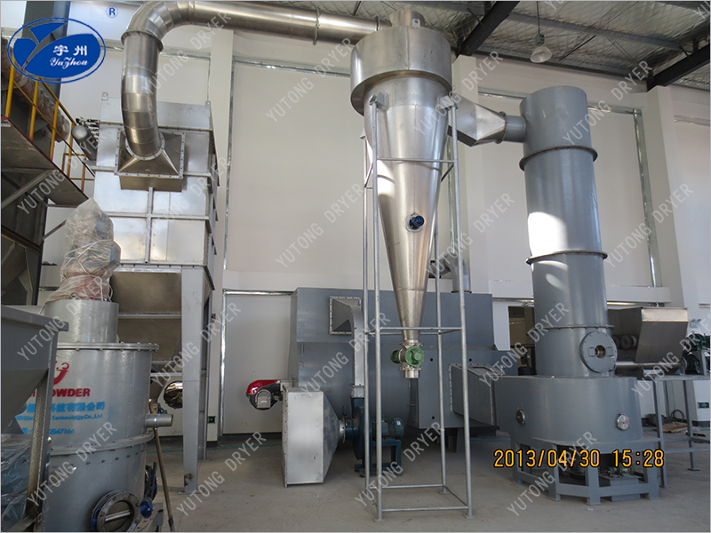 7、干燥室內(nèi)周向氣速高,物料停留時(shí)間短,有效防止物料粘壁及熱敏性物料變質(zhì)現(xiàn)象,達(dá)到高效、快速、小設(shè)備、大生產(chǎn)。