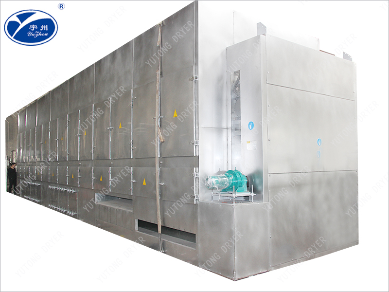 2、該系列帶式干燥機(jī)物料攤放到不銹鋼網(wǎng)帶上,熱氣流自下而上地穿過網(wǎng)帶上的物料鋪,熱交換均勻、充分,生產(chǎn)效率高,產(chǎn)品的質(zhì)量好,設(shè)用冷動(dòng)層和旋轉(zhuǎn)鋪平裝置,出料溫度低,利于及時(shí)包裝。