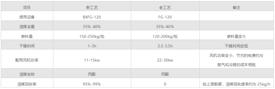 3、經(jīng)閉路循環(huán)沸騰干燥機(jī)干燥之后含有溶媒的熱濕氣進(jìn)入冷凝器,將氣體中的溶媒冷凝(溶媒回收率為95%以上),既可以回收溶媒又可以冷凝除濕干燥氣體。回收的溶媒可以再次循環(huán)使用,可以節(jié)約成本,同時(shí)不會(huì)造成尾氣排放對(duì)環(huán)境污染。