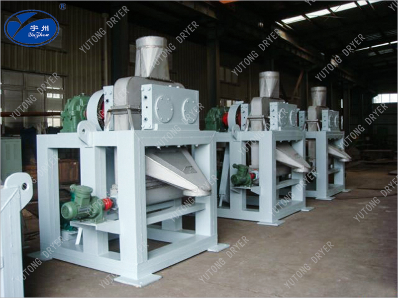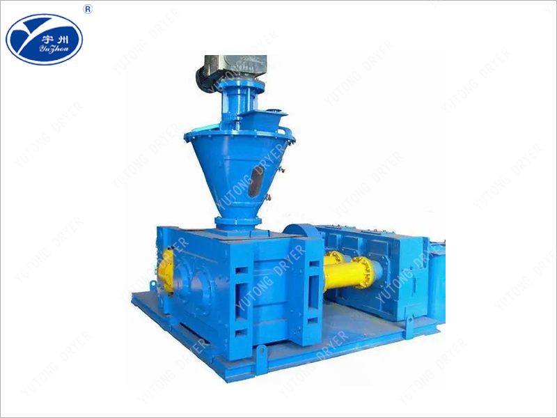 各種干粉物料從設(shè)備頂部加入,經(jīng)脫氣、螺旋預(yù)壓進入兩個平等軋輥,軋輥相對旋轉(zhuǎn),物料被強制送入兩輥之間,帶槽軋輥將物料咬入輥隙被強制壓縮,物料通過壓縮區(qū)后,物料的表面張力和重力使之自然脫出。脫出后的指條狀團塊進入碎粒機由旋轉(zhuǎn)刀排破碎,被破碎的物料進入整粒機通過滾動刀排使顆粒和部分粉狀物料進入旋振篩進行篩分。合格品通過輸送機被送入成品倉。粉狀篩下物料通過輸送機再次被送回原料倉進行二次輥壓,擠壓力的大小可根據(jù)造粒操作的需要由液壓油缸的壓力進行調(diào)節(jié)。 通過改變輥面開槽形式,可得到片狀、條狀、扁球狀物料。