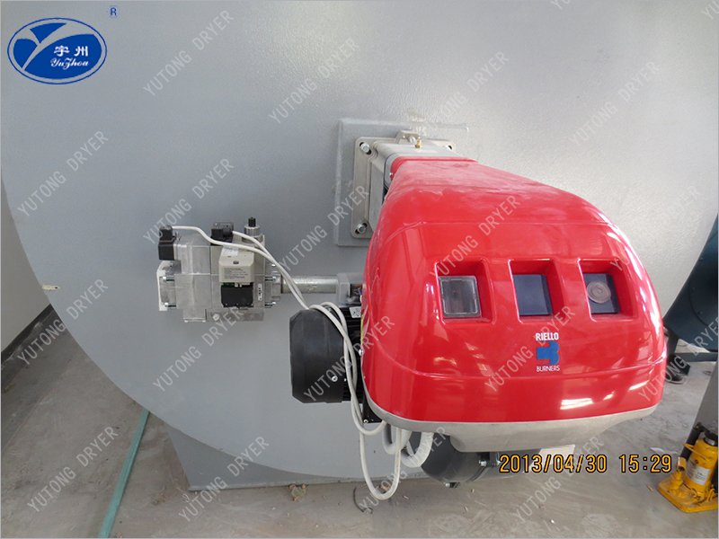 燃料通過燃燒器燃燒,產(chǎn)生高溫燃氣。并借助具有強化換熱措施的熱風爐將高溫燃氣的熱量傳導給被加熱的空氣,高溫燃氣經(jīng)熱量散發(fā)后溫度降低至250℃后排到大氣中。需加熱的空氣通過選配的鼓風機強送入熱風爐,吸熱后溫度升至額定值從熱風出口處送出,當熱風溫度達到額定溫度上限時,燃燒器會自動停止燃燒或自動轉(zhuǎn)為小火焰燃燒,當熱風溫度降低到額定下限溫度時,燃燒器又會重新點燃運行或轉(zhuǎn)為大火燃燒,升溫的速度可以調(diào)節(jié)進風閥的開度來實現(xiàn)。